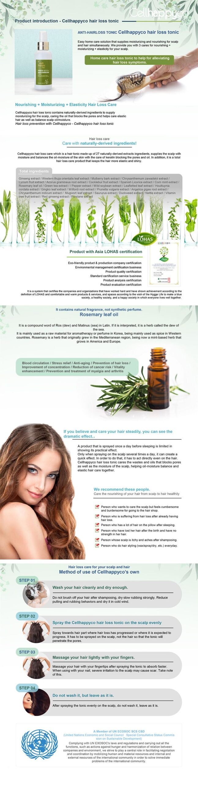 Simply spray it onto the scalp every day before sleep. Do not need to wash it off. The herbal ingredients will remove dead skin cells and excessive oil on your scalp.